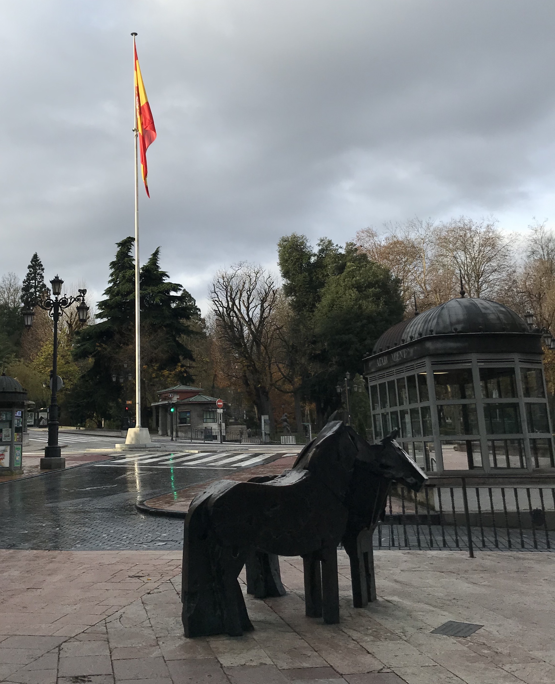 Oviedo es una ciudad curiosa. Por ejemplo, en la misma plaza donde han plantado la gigantesca bandera que hoy nos ocupa hay unos cuantos bancos (de los de sentarse, no de los de atracar) que, desde que fueron pintados en 2017, han sido objeto de crítica constante por parte de particulares y habitantes del propio consistorio. Puede que las quejas tengan que ver con que se pintaron en tonos arco iris para conmemorar el día del orgullo LGTBi+ o puede que no. Puede que haya habido gente que los pintó por encima con los colores de otra bandera o puede que no. Es difícil estar seguro de nada en estos tiempos de incertidumbre y twitter.